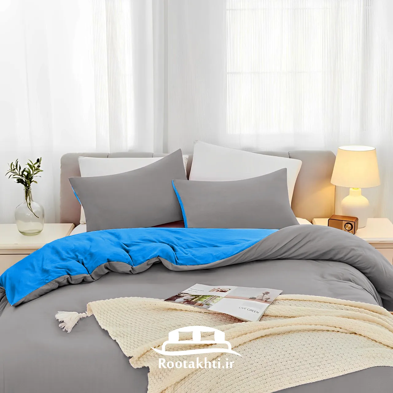 خانه سرویس روتختی سرویس روتختی پنبه نخ روتختی یک نفره روتختی دو رنگ روتختی آبی طوسی