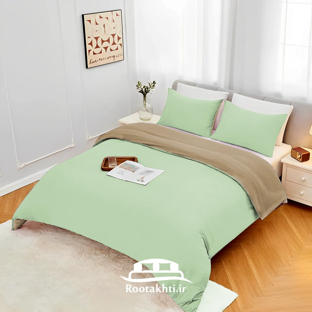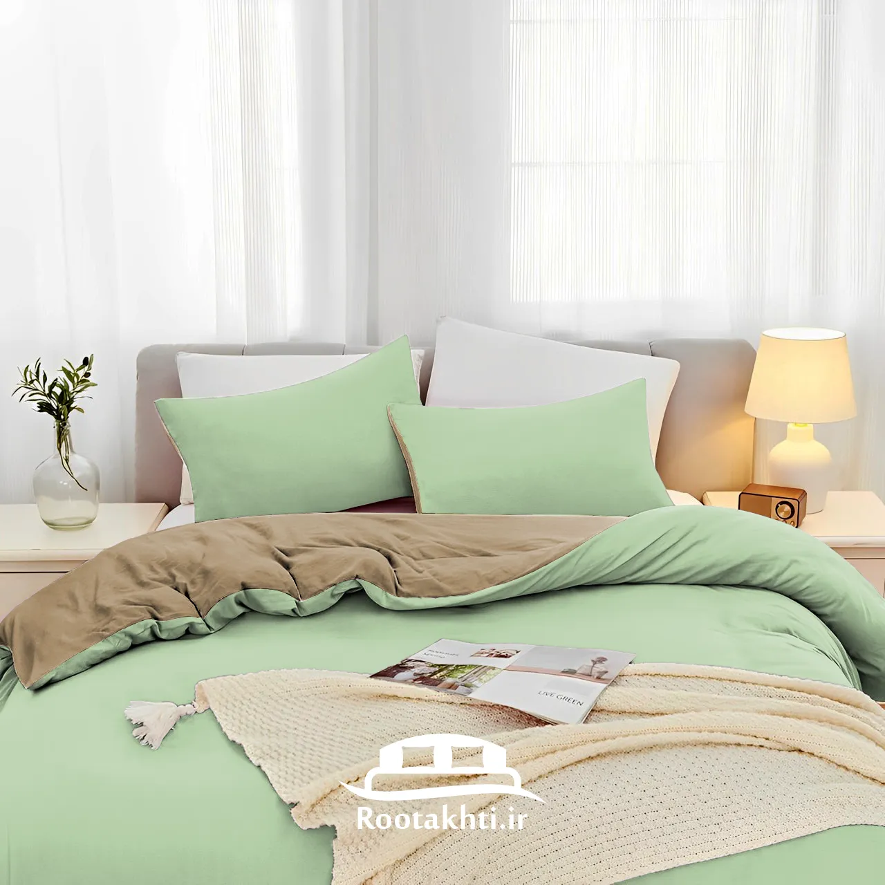 سرویس روتختی دورنگ زیتونی ملایم و شتری گرم