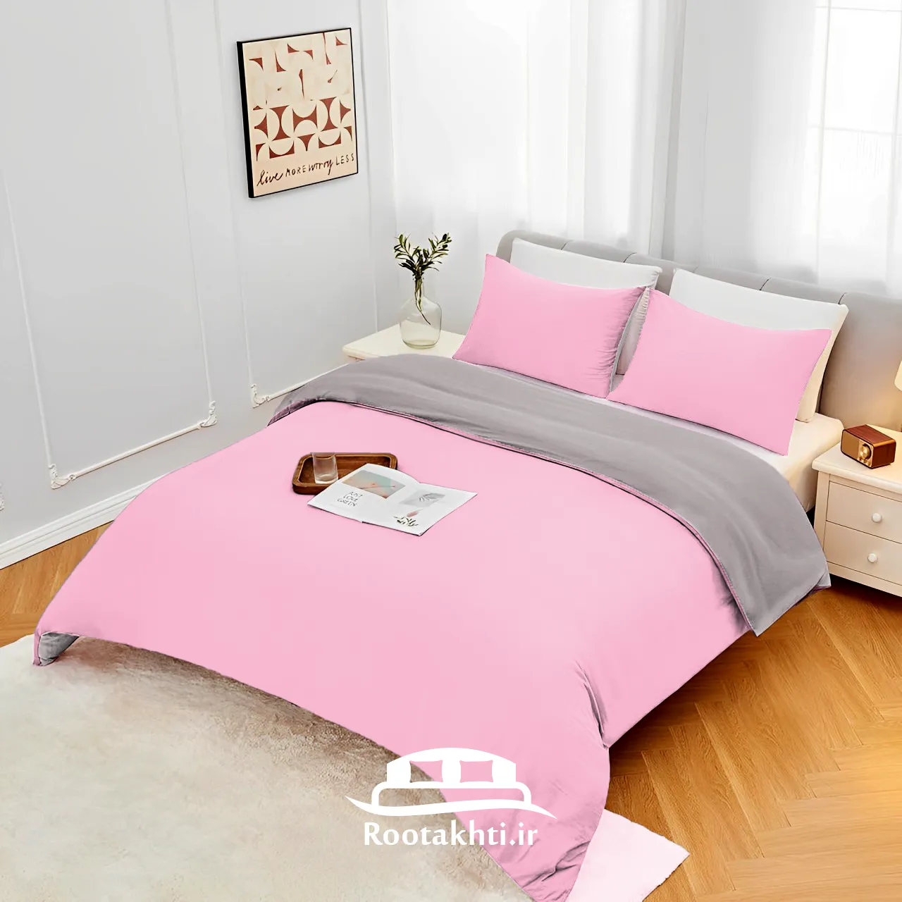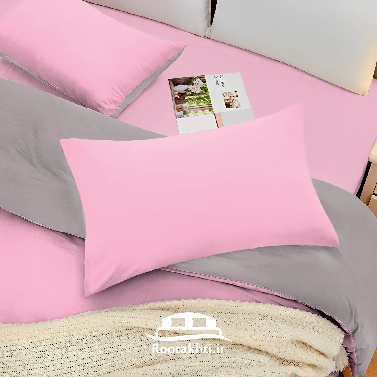 سرویس روتختی دورنگ صورتی رز و طوسی روشن