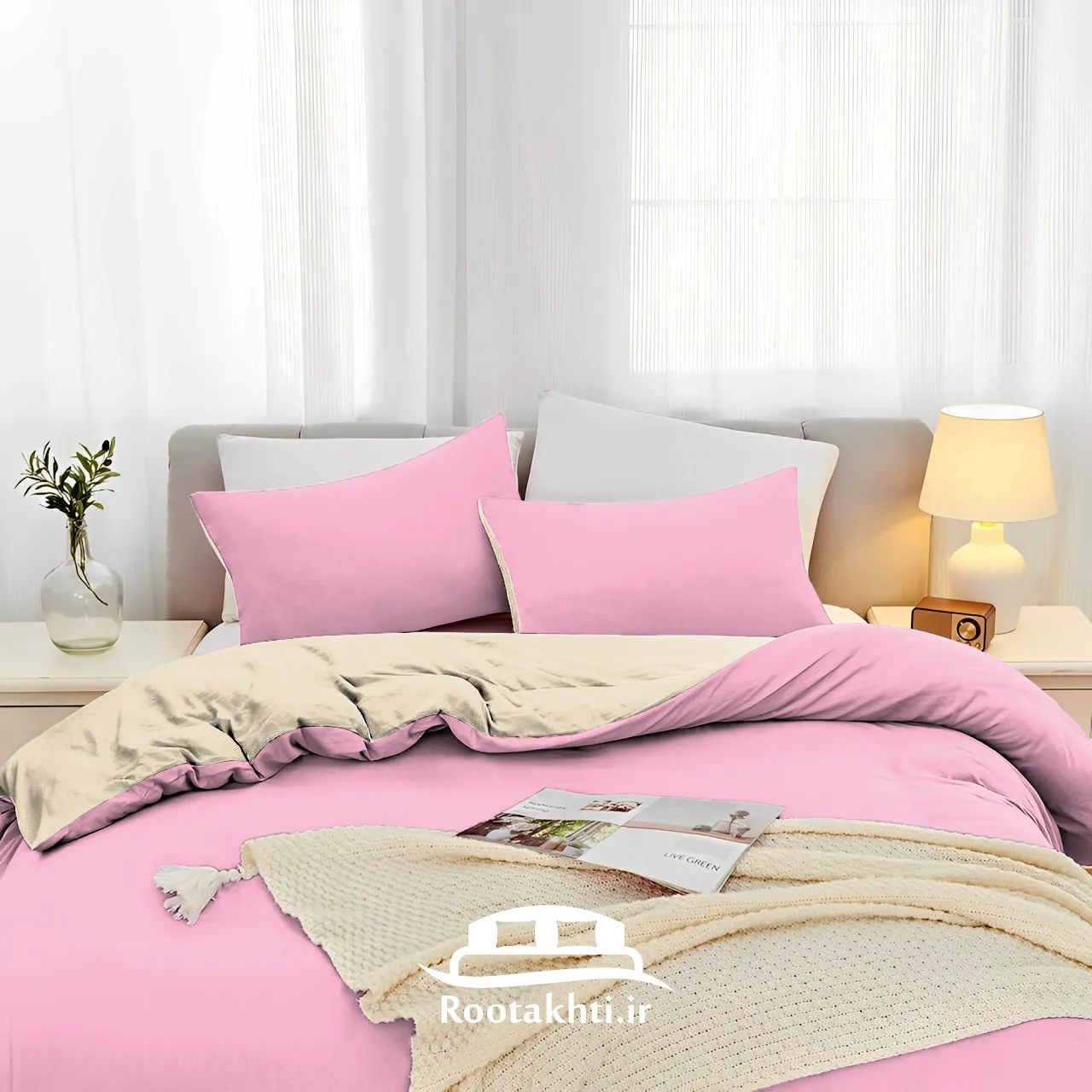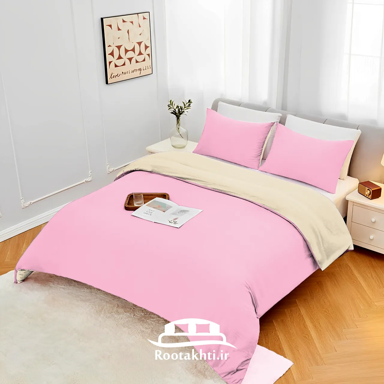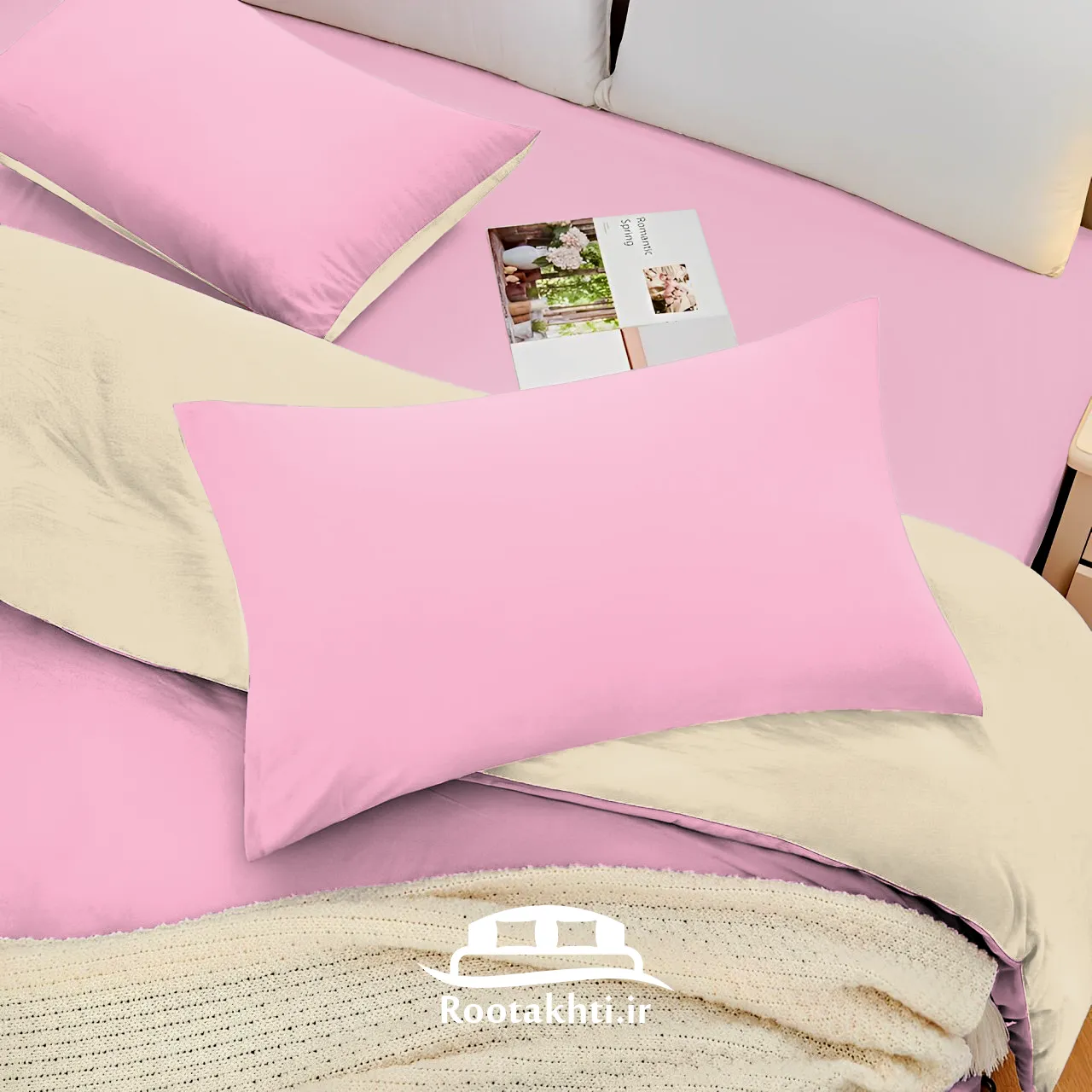 سرویس روتختی دورنگ صورتی پودری و کرم وانیلی